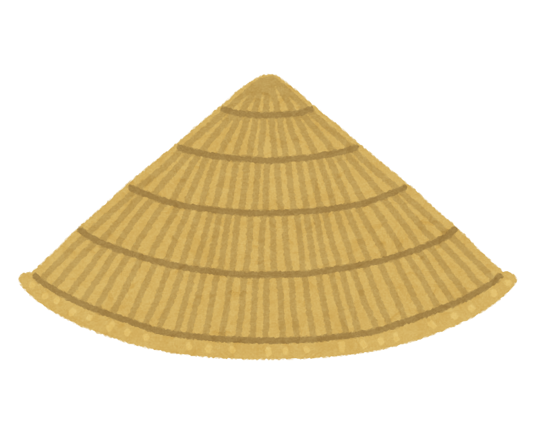 雨用の傘ではなく、花笠音頭のような笠でした。